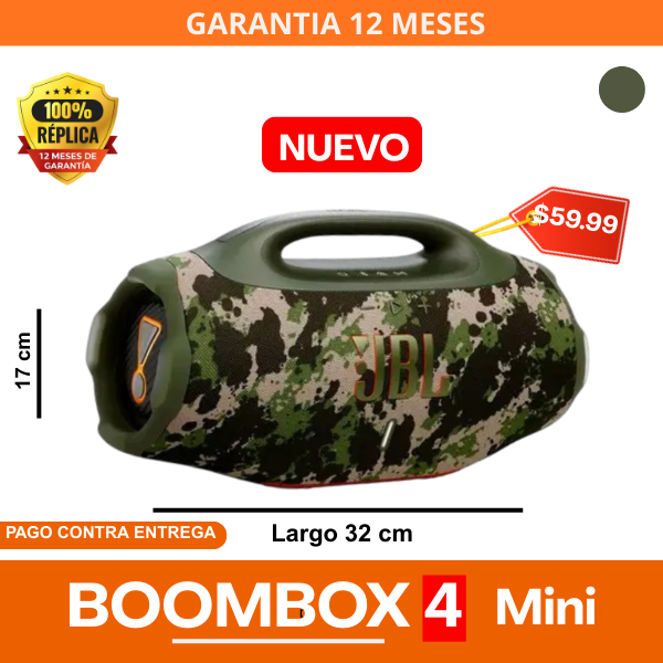 Con nuestro parlante JBL Boombox 4 Replica, tendrás música sin interrupciones , gracias a su batería prolongada podrás disfrutar sin preocupaciones